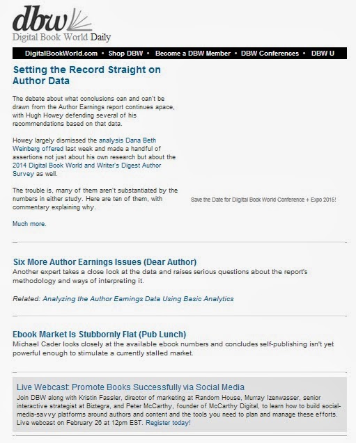 Hugh Howey's numbers and well-defended conclusions have wrought CHAOS in the establishment. Digital Book World is repeatedly blowing up email newsletters filled with non-stop defensive arguments from Mike Shatzkin and Dana Beth Weinberg trying their damnedest to bring Hugh's data into question.