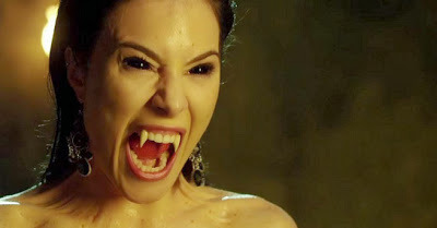 This film had SHIT-TONS of sex appeal: a butt naked girl hanging upside down to drain her blood into a tub. Very Inspiring. We get a couple of almost lesbian vampire scenes (could have been way better--barely scraped the tip of that iceberg). Then there's the smoking hot Gerri Dandridge played by Jaime Murray, a.k.a. Elisabeth Bathory, the embodiment of what every female vampire should be.