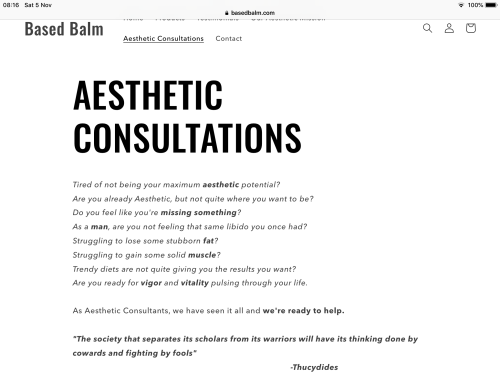 And occasionally the streams cross, in a truly glorious manner. Based Balm’s aesthetic consultations; Thucydides wants you to combat cultural decadence and the decline of traditional masculinity by buying skincare products. Honestly, I don’t think a paraphrase can do justice to this website…