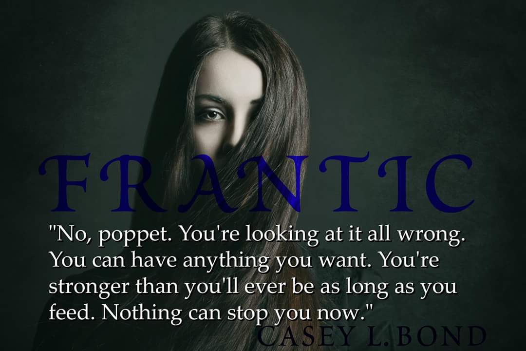 Title: Frantic Author: Casey L BondGenre: YA ParanormalCover Designer: Cover Me DarlingModel: Jacey Julep
