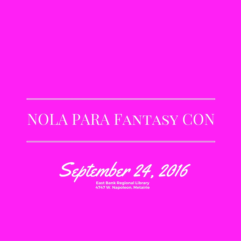 I am excited to announce I will be at NOLA Para Fantasy Con on September 24, 2016. It begins at 9am and it is located at East Bank Regional Library. I am speaking on a panel about The Unique Legends and Lore of Southern Louisiana from Ghost Stories to Swamp Monsters. This panel begins at 11:30 am. I look forward to seeing you there.