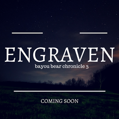 What I'm working on: Engraven (Bayou Bear Chronicle 3) is finished and being edited. COVER REVEAL IS BELOW. Sketchy Love (Daring Hearts Boxset) is done! And Lightning Forgotten is almost finished! Next I'm working on 2 projects that I haven't told a soul about. I'm absolutely terrified of one of them. Like downright vomiticious about it.