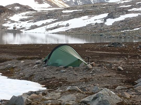 The Laser Comp on its first real test: a week backpacking in Jotunheimen,NorwayI first used the Laser Comp while backpacking through Jotunheimen in Norway. I was battered by some extreme weather on that trip, and although I liked the small pack size and roomy interior of this tent, it was frankly terrifying to sit out a storm in it. You can see in the picture above how I was forced to use my ice axe to reinforce one of the guylines. The supplied Titanium pegs were useless in anything but optimal ground, and I ended up replacing them with slightly heavier aluminium tri-beam pegs. Also, the structure just isn't that stable in high winds and some big gusts flattened the tent so much that the pole warped and the canvas was blown flat against my body. During one particularly bad gale I had to hold the structure upright with my own body to prevent the tent from being blown into Sweden.