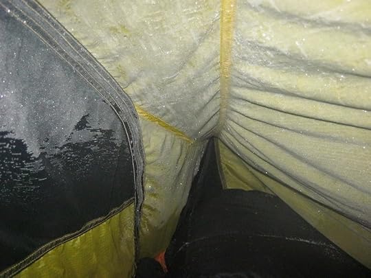 The tent survived some fierce winds on that trip, and after replacing the pegs my opinion of it improved somewhat. Since then I've probably spent about thirty or forty nights in it, including a few more gales. The other major drawback of the Laser Comp is that ventilation never seems to be sufficient and it suffers badly from condensation.