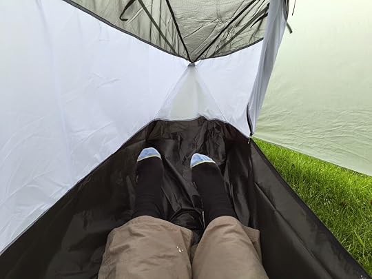 Camp twoNeedless to say, the first thing I did when getting into my shelter was to take off my socks and take a proper look at my feet. This is where I made a slightly foolish error. I had brought some Gehwol Extra foot cream with me, which is highly recommended by walkers who use it to keep feet in good condition when faced with wet weather. I'd never used Gehwol Extra before and was keen to assess its suitability before it earns a place in my Cape Wrath Trail pack. I slapped a good covering on to each foot in the belief it would aid recovery.The thing is, there are several different sorts of Gehwol cream. I later discovered that the Extra variety is a barrier cream, not a recovery cream. It's my belief that applying it when my feet were damp actually prevented them from drying out properly, because about half an hour after going to sleep I woke up with very itchy feet – another symptom I remember from my last encounter with immersion foot.