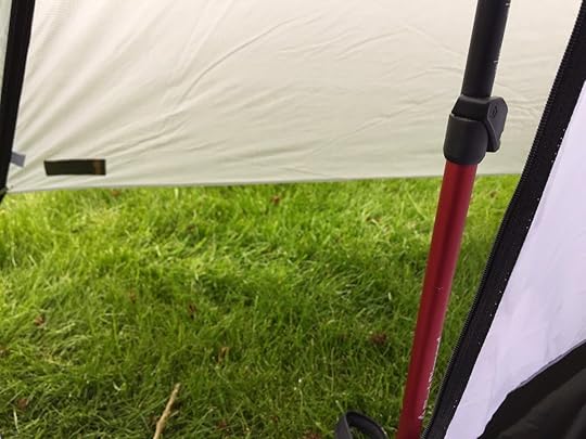 The point where the flysheet is supported by the pole is heavily reinforced.No worries about the point going through the fly here. Note also the plastic