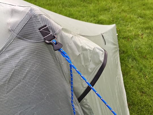 The manufacturer makes it very easy to add guylines to the Notch. There are two clips, one at each pole apex. I cut lengths of 3mm cord and fitted guylines. It took about two minutes.
