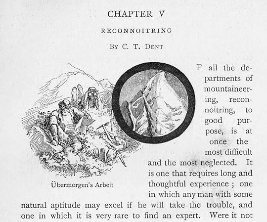 Today I'd like to share some beautiful illustrations with you. One of my most prized books is the Badminton Book of Mountaineering, a massive tome of 19th century climbing lore compiled by C.T. Dent and published in 1892. It features contributions from the greatest climbers of the post-golden age era, including W.M. Conway, D.W. Freshfield, C.E. Mathews, and C. Pilkington.