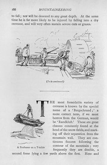 This book isn't unique. It's one of a number of guides that aim to be complete mountaineering manuals — the most famous is probably Mountain Craft by G.W. Young — but what sets Badminton apart is the charm and humour of the illustrations. The captions are frequently witty (or not so witty) puns. There's a real sense that mountaineering is starting to find itself again as the 19th century draws to a close. After the 1865 Matterhorn disaster, and the first ascents of all the 4000m peaks were completed, Alpinism experienced something of a lull — but it didn't take too many years for a new generation to burst upon the scene with enthusiasm and new ideas.