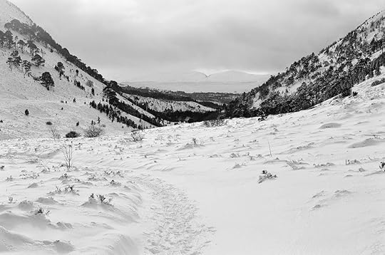The hike through Rothiemurchus is pleasant at any time of year and I always enjoy striding between those grand old Scots Pines, hopeful to catch a glimpse of a red squirrel or red deer, maybe even a wildcat. On this occasion I'm sorry to say I saw no wildlife whatsoever. The forest was still and utterly silent under its blanket of snow, which grew deeper as I approached the mountains. There was very much a sense that the forest was asleep for the winter.