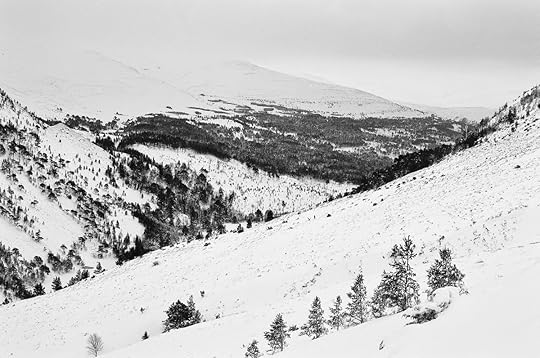 Bothy bokehThe ascent of Bynack MoreI began my walk at first light. The access track in the bottom of the glen was very deeply drifted over, and even snowshoes couldn't prevent me from postholing in the softest stuff. They definitely made a difference, allowing me to walk over some surfaces I would have sunk knee-deep in had I been wearing boots, but it was still hard going. Progress was slower than I would have liked.