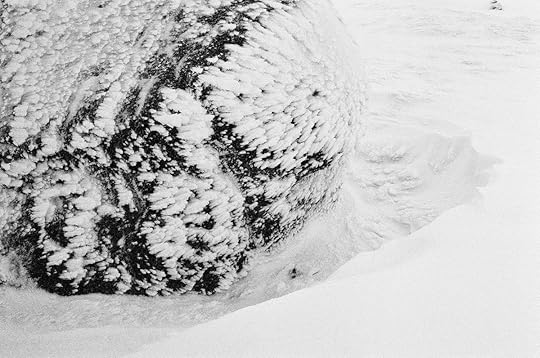 A lot of white. This is the last clear shot I got before the summit ridge and the clag set in.When I finally reached the base of the summit ridge, the wind was getting up a bit and the terrain ahead looked much steeper. I decided to swap my snowshoes for crampons and my trekking poles for an ice axe. This proved to be a good decision because the rocks were coated with rime ice and much of the snow on the crest proved to be iron-hard neve.