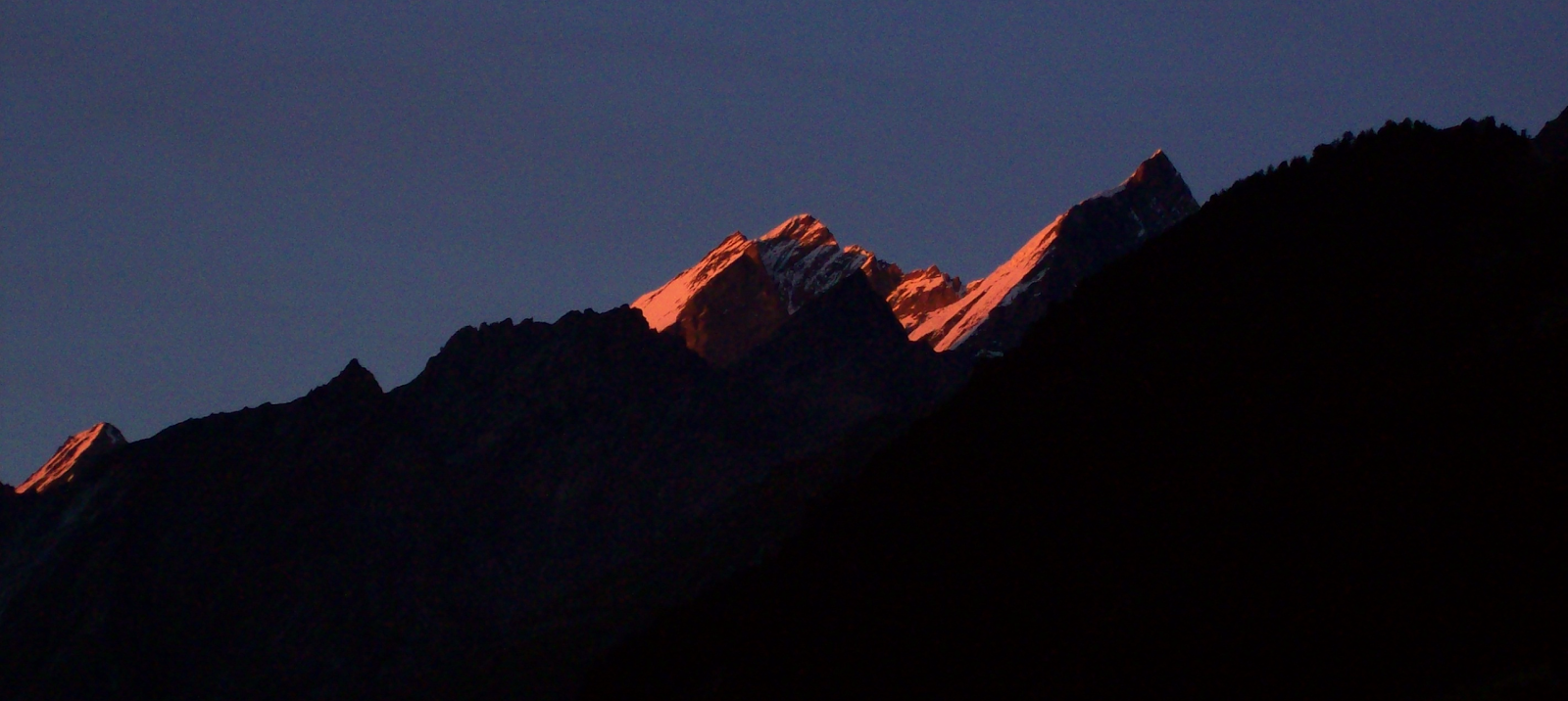Alpenglow on the Dent d'Herens and satellite peaksThe Comba d'Oren
