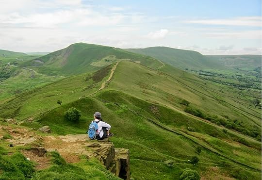 The scenic corrie beneath Back TorBeing Bank Holiday Monday, the ridge was packed with walkers, runners, mountain bikers — a mass of people of all kinds. I often find this objectionable on a hill but it seemed somehow appropriate that so many others were up there enjoying the views with us.We nipped up Back Tor for the view from the top before striding the long whaleback form of the ridge towards Mam Tor.