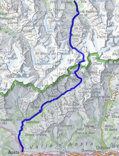 Altogether, the route I took was about 40 miles. Strong walkers could easily do it in two days, particularly by taking the bus or driving to Valpelline itself instead of starting from Aosta on foot.