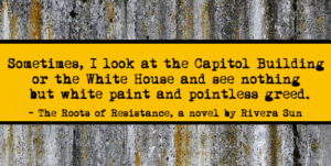 The problem with being in the capital, Zadie realized, was that it allowed politicians to forget the faces of the people. At the far end of the Mall, veiled in snow, Lincoln’s large and iconic gaze towered over the upturned agony of the humans below. Marble columns and business suits clouded the eyes from the grime and misery of the rundown, forgotten, and neglected corners of the nation. Sterile statistics stood in for the wailing grief of mothers who had lost their children. Politicians never had to see the desperation of people denied homes or healthcare. Lobbyists did not evict families with their bare hands; they left the tossing out of pillows and photo albums to others. Zadie longed to haul the Congress members by the scruff of their suits down into the gutters of the nation. Her fists clenched in her coat pockets. She yearned to throw the whole lot of those closed-hearted, stubborn mules into the heart of the misery their policies created.