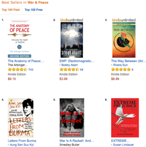 We’re celebrating some indie author publishing milestones around here. Steam Drills hit #1 ebook in two of its categories and The Way Between topped the charts of the War & Peace category, besting out Smedley Butler’s War Is A Racket to become #3.