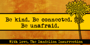 “The Dandelion Insurrection has always been this way, springing up where one least expects. We’re a swarm of birds, not a silver bullet,” Zadie said. “Our strength is in our diversity and our sheer, dizzying numbers: millions of people, thousands of ideas, hundreds of strategies, dozens of pivot points of change.”