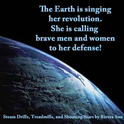“The Earth is singing her revolution. She is calling her brave men and women to her defense.” -from Steam Drills, Treadmills, and Shooting Stars, by Rivera Sun