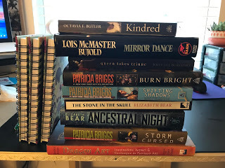 What have I been doing? I've been re-reading some of my all-time favorites such as Anne Bishop's Other series, Tanya Huff, Joely Sue Burkhart's Vampire Queen series, because I'm in a bit of a book slump. Nothing is holding my attention.