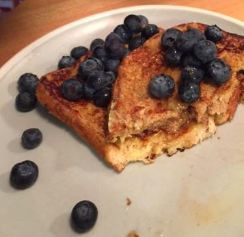 Once the bread was dipped in an egg-and-milk batter, sprinkled with cinnamon and drizzled with maple syrup (the real kind), and dotted with blueberries, he said he couldn't tell the difference taste-wise, and gobbled them both up. So I asked him if he would be willing to do without the azodicarbonamide-laden bread with the flour that had been taken apart and put back together again (that's what the term "enriched" means, btw), and he agreed to try it for a month. Looks like we'll be sampling our way through Dave's selection.Baby steps, right?