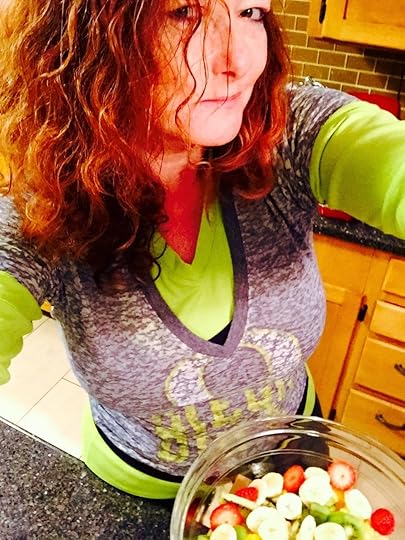 Here are the fruits of my labor for our potluck Championship Game dish. You get the color thing, right? The overwhelming Oregon yellow/green, dwarfing the Buckeye red?