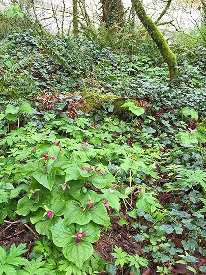 Twenty-six years here and I'm still bowled over with the transformation each spring. The saturation of color, the bone-deep fecundity. A particular shade of the brightest of greens; the verdant rubber of new fir. Portland is known, normatively, for roses, but ferns, cedar, trillium and moss rule here this time of year.