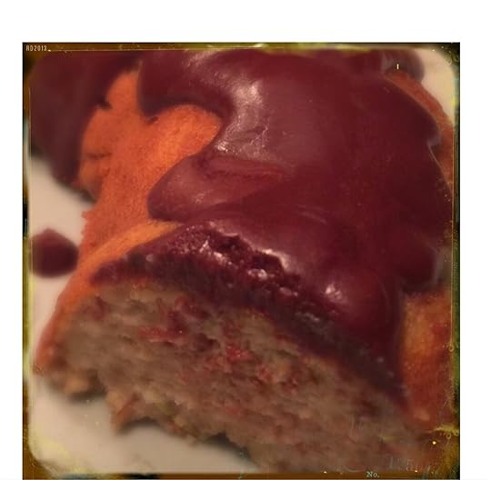 After it cools, remove cake from pan. Just before serving, double-boil some dark chocolate to drizzle over the top. You can get 12 servings from this, at 120 calories a serving.