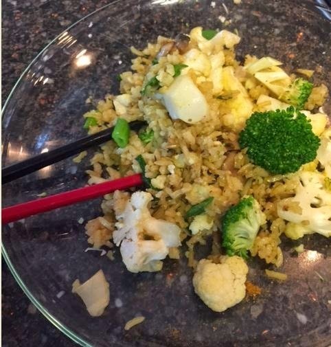 LUNCHYesterday's dinner tofu reheated and mixed with a handful of chopped peppers, cashews, garlic and tomato. Serve over leftover rice or roasted potatoes