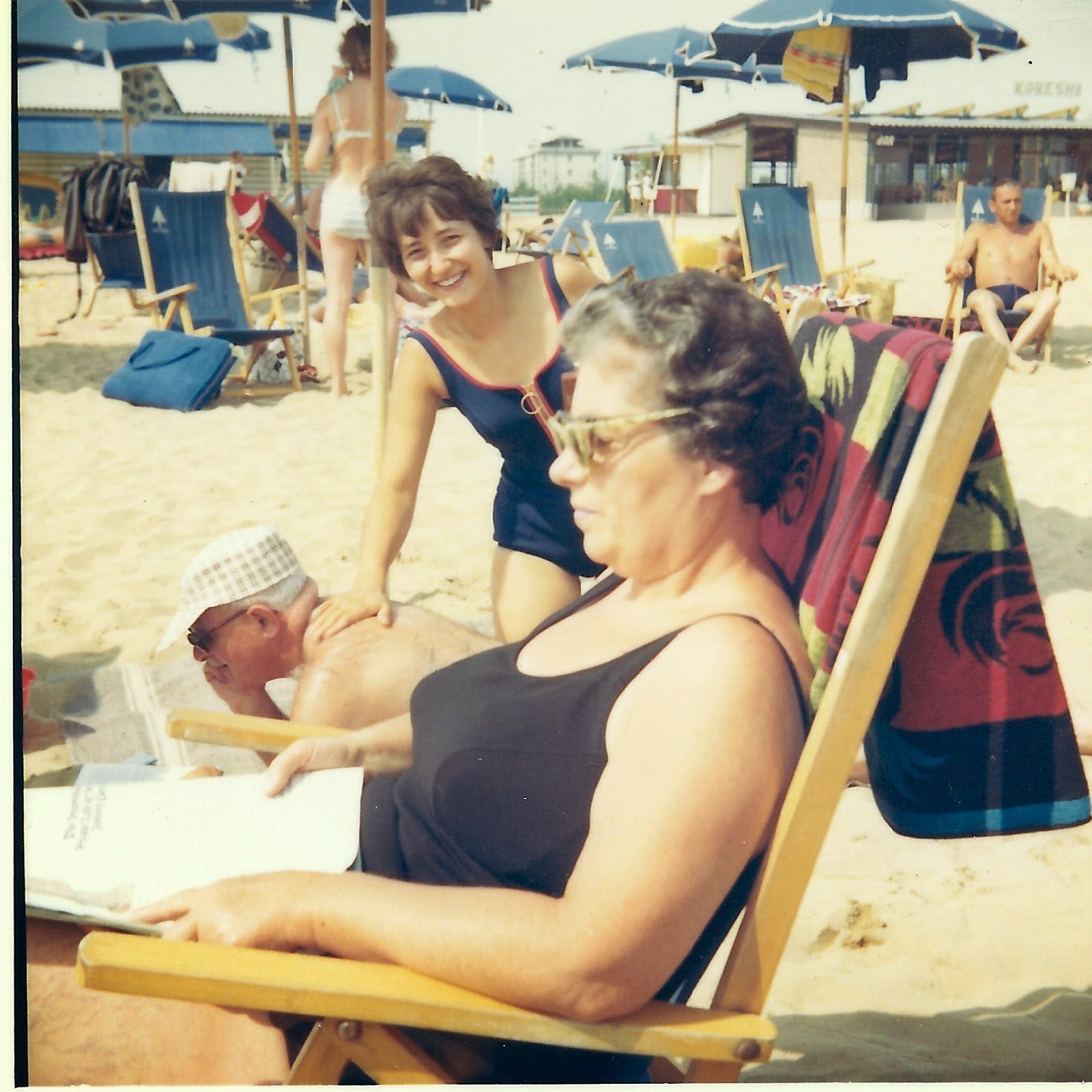 Once, we convinced her to scale the chain link fence of the country club pool for an illegal midnight swim. She often escaped to open fields and forests to collect things that she would later weave into wreaths. She was a “lefty,” busying herself with handwork projects involving yarn, fabric, textures. She made hundreds and hundreds of cookies every Christmas, and Opa would grab my sister and me to deliver tins of them to nurses and patients.