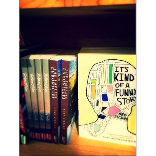 So when I got my book deals, I began thinking of Ned Vizzini as my soon-to-be neighbor.This guy who shared my sense of snark and disdain for asshole teachers. Who wrote his truth directly to his audience - and was known as a sensitive, kind soul who spent hours chatting with his fans in bookstore lines. A neighbor anyone would be thrilled to have.In various bookstores, I stalked the P - Z young adult shelves, my eyes grazing along until they landed on the (always face out) white and black map head cover of Funny Story. There, I thought. That's where my books will live next year. Next to Ned. My little ramble-shack cottages next to this architectural masterpiece!