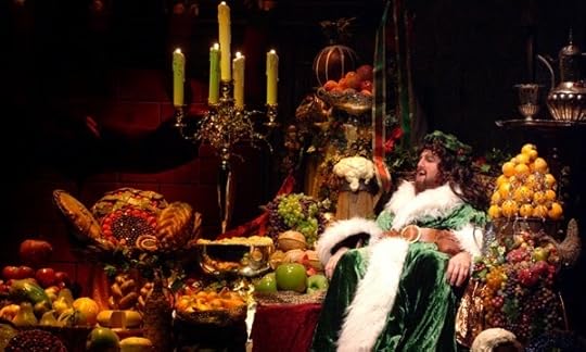 snap of the ghost of Christmas Present from the Goodman Theatre's production of A Christmas CarolIt's that time of year again. Where "Let's Talk About Writing" becomes "Let's Talk About Eating."I outdid myself this holiday season, in terms of cookie, chocolate and alcohol consumption. In my mind, I resemble the Ghost of Christmas Present in "A Christmas Carol." Everything inflamed and larger than it should be. My stomach gurgling and hurting. My skin blotchy. I picture my liver being blown up by a ball pump. And the vessels in my heart choked and lined with fat. The bad fat. You know, LDL and whatnot.