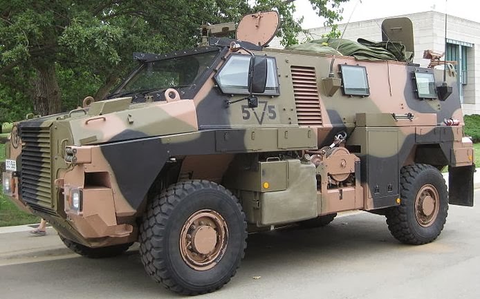 Photo form wikimedia commons, Creative Commons Attribution-Share Alike 3.0 Unported license, by Nick-D.The vehicle is mine-proof, bullet proof, and fire proof. The version in 'Forager' has had solar panels added and has an electrical engine, since Newhome has no access to petrol. The Bushmaster's in 'Forager' are over a hundred years old, with virtually every part having been swapped out or reconditioned during that time.