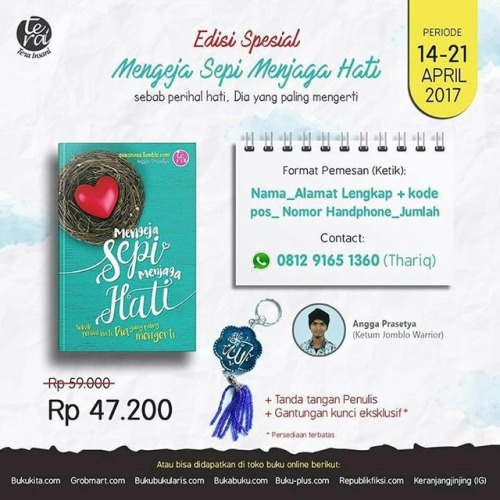 Satu lagi penulis Tumblr yang akhirnya menerbitkan buku. Buku pertama adik yang satu ini layak untuk kalian miliki, baca, dan hadiahi. Untuk siapapun yang sadar bahwa pacaran bukan jalan menemukan jodoh. PO bukunya pun sudah dibuka, bahkan enggak lama lagi sudah akan close.