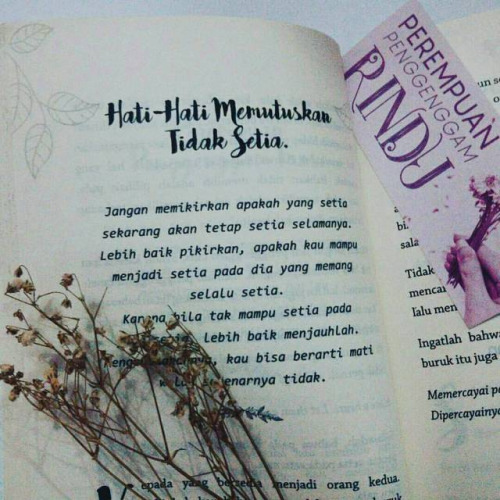 “Ditinggalkan memang menyakitkan. Namun, lebih sakit bila terlambat sadar telah keliru bertahan sendiri. Padahal seharusnya, sudah sejak lama pergi.” (tiasetiawati, dalam Perempuan Penggenggam Rindu)