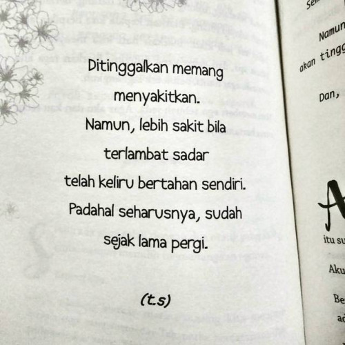 “Mungkin jatuh hati bukan pilihan. Namun ketika kamu jatuh dan tak ditangkapnya, adalah pilihanmu untuk bangun atau tetap jatuh dan menderita.”