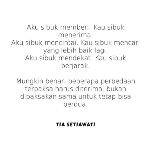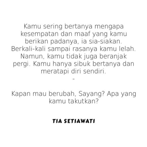 Ada yang bergetar begitu hebat dalam dadaku. Bahkan mungkin egoku juga turut serta terbakar. Aku ingin memberontak dari rasa tidak nyaman ini. Namun aku melawannya. Memangnya aku siapamu? Saat ini, kita hanyalah dua orang asing, yang pernah disatukan masa lalu. Bukan siapa-siapa. Kita sama-sama usang dan asing, bagi satu sama lain.