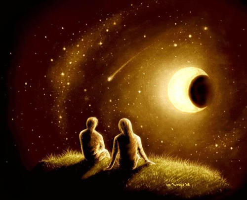 menatap langit malam yang penuh bintang,