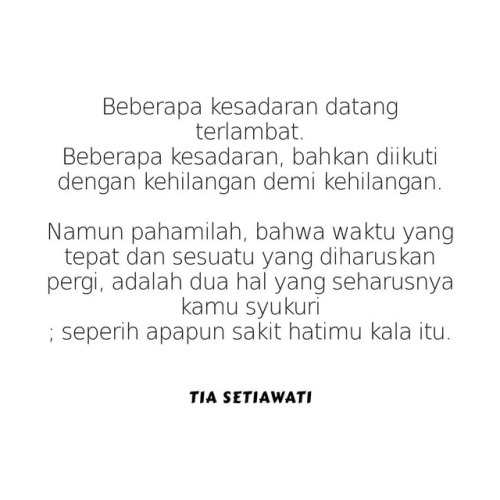 Sakit dan kehilangan adalah dua hal yang tidak bisa siapapun hindari dalam hidup ini. Sudahlah, yang pergi biarkan pergi. Yang membawa racun begitu banyak dalam hidupmu, lepaskan dengan sepenuh hati.