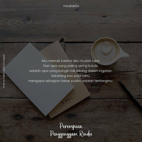 Aku menulis karena aku mudah lupa. Dan apa yang paling sering kutulis, adalah apa yang kuingin tak lekang dalam ingatan. Sekarang kau pasti tahu, mengapa sebagian besar puisiku adalah tentangmu.
