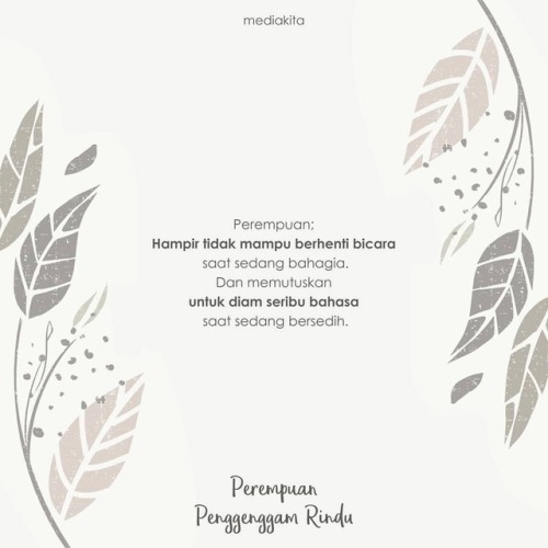 Perempuan sering mengatakan dia baik-baik saja. Nyatanya, dia menyimpan sejuta gemuruh dalam dadanya : sendiri saja.