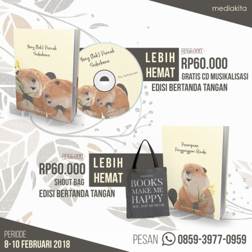 Karena ini edisi sangat terbatas, pastikan kamu enggak terlewat ya. Jangan lupa, berkabar pada kawan, pacar, gebetan, atau siapapun yang juga mau beli buku ini. Siapa tahu, bisa menghemat ongkir kan?