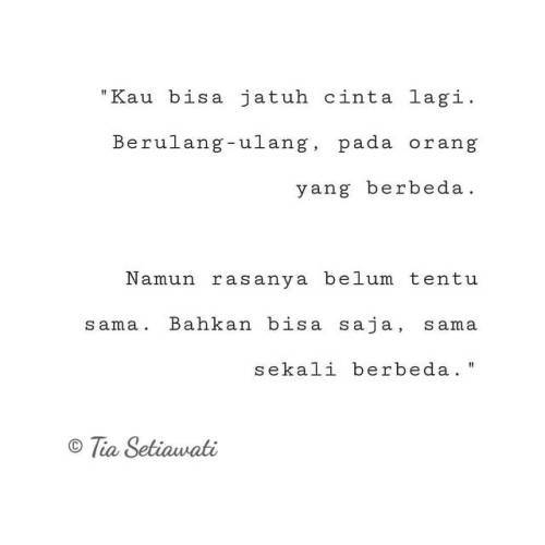 Selalu hargai rasa apapun yang kaurasakan, saat mencintai seseorang. Karena rasa itu bisa jadi tidak berulang atau pergi ketika kau bertemu seorang lain yang baru.