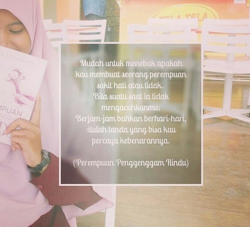 Bila suatu saat aku diam saja, kau harus curiga. Kau tahu, aku tidak pernah suka tidak mendengar suaramu. Aku tidak pernah suka, berdiam diri dan sama sekali tidak mendengar kabarmu. Aku pun tidak suka, mengaku tidak rindu saat hatiku justru merasa sebaliknya. Namun ya, aku ingin kau tahu tanpa perlu kujelaskan. Aku ingin diamku menjadi tanda yang bisa kau ketahui kebenarannya. (Perempuan Penggenggam Rindu dalam potongan rindu “Beri aku tanda bahwa kau peduli”)