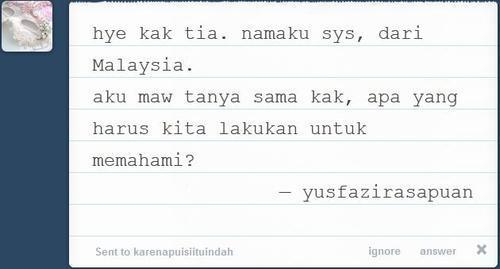 Dan yang terpenting, jika tidak mampu memahami, cobalah untuk memaklumi.
