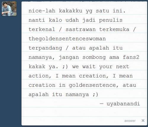Teman seperti kamu juga, yang membuat saya tidak akan pernah bosan untuk terus membalas setiap surat yang masuk :)