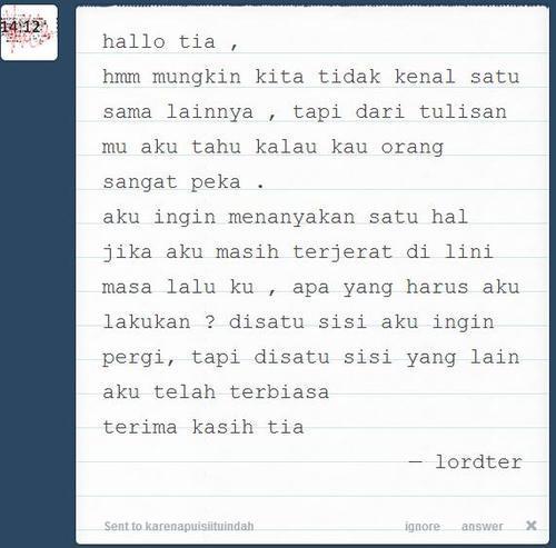 Terkait dengan masa lalu, aku sempat membalas beberapa surat. Coba cek ke sini, lalu ini, dan kemudian ini.