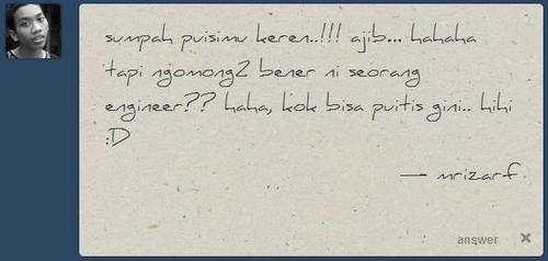 Sedangkan puisi adalah sebuah kecintaan tersendiri.