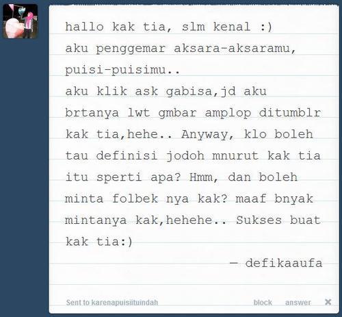 salam kenal tia~ gimana ya jika saya mahu mendapatkan buku2 kamu itu disekitar Malaysia ini? bait2 sajak yang kamu puitiskan bener2 menusuk hati saya. (: