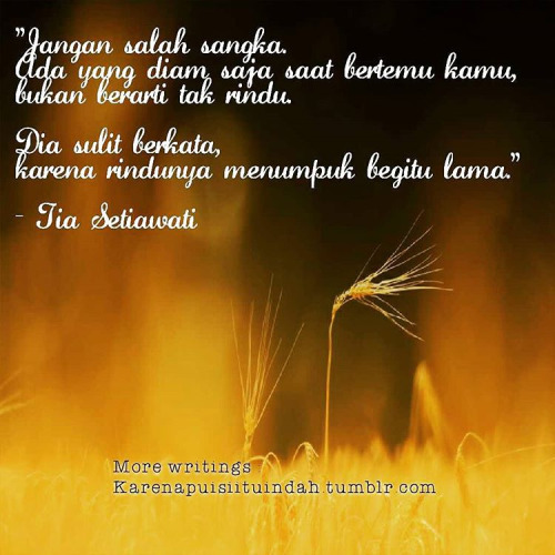 “Jangan salah sangka. Ada yang diam saja saat bertemu kamu, bukan berarti tak rindu. Dia sulit berkata, karena rindunya menumpuk begitu lama.”